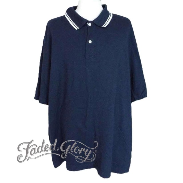 【肩幅65.5cm】◎襟バイカラー◎FADED GLORY(フェイデッドグローリー)無地 半袖ポロシャツ 2XGサイズ ネイビー コットン100% 【湘南倉庫】USメンズ古着 ビッグサイズ ゆるだぼ ノームコアコーデ