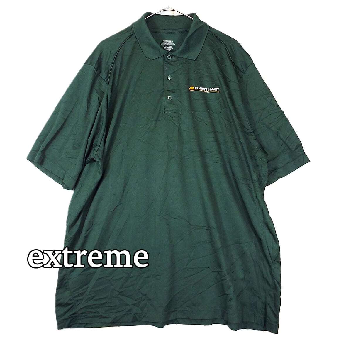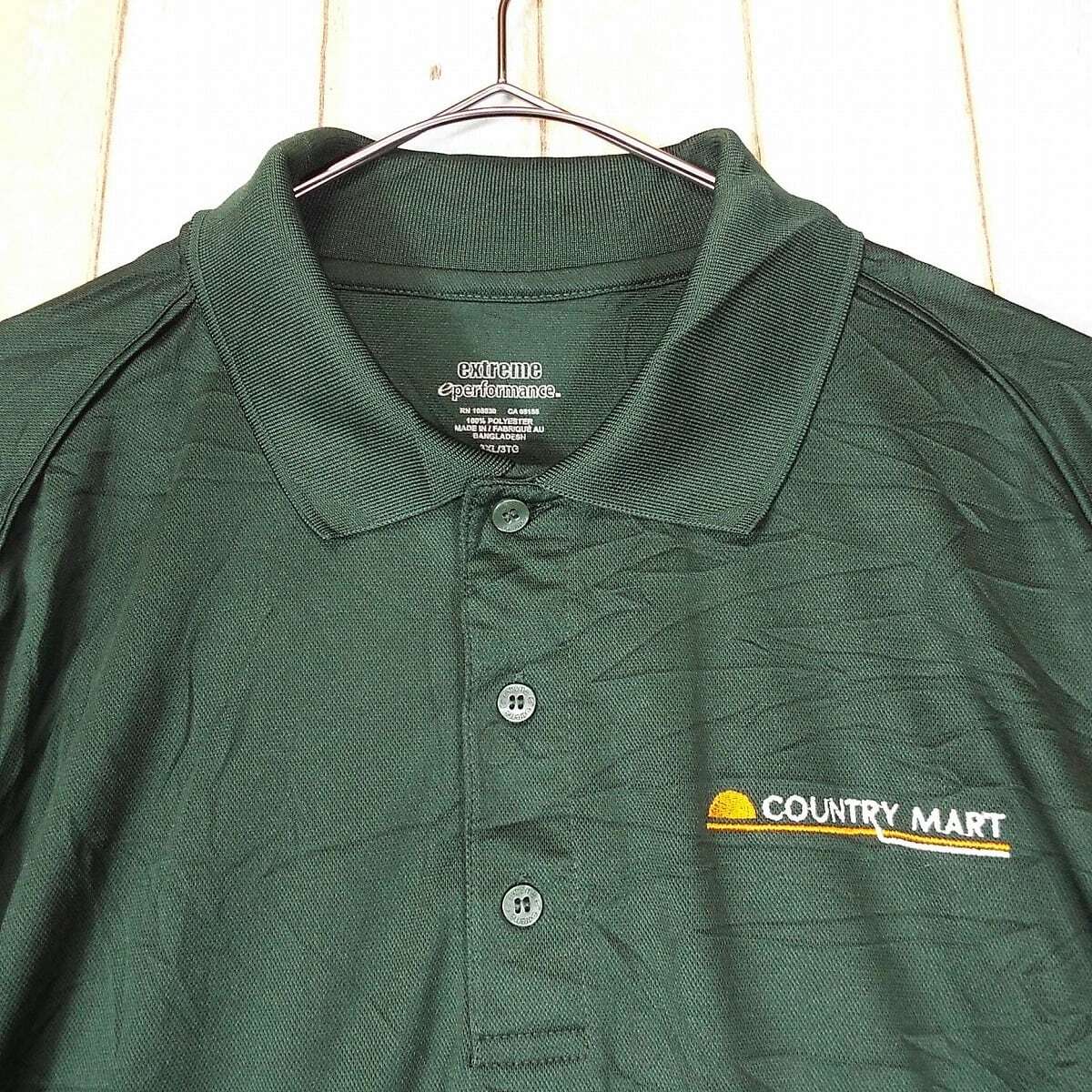 【肩幅51cm】【企業ロゴ】extreme エクストリーム COUNTRY MART 速乾 半袖ポロシャツ 3XLサイズ グリーン ポリエステル100%(湘南倉庫)US古着 カラーシャツ 17002905 ビッグサイズ