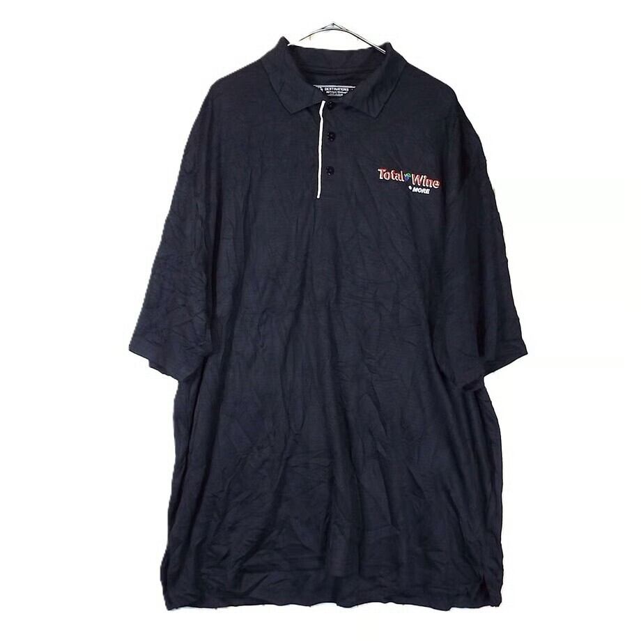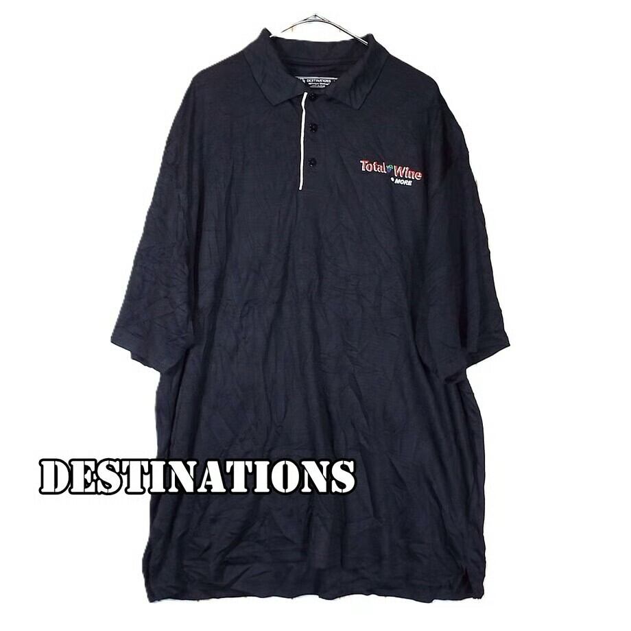 【肩幅59cm】DESTINATIONS デスティネーション 胸刺繍 ロゴ ワイン フルーツ ブドウ 半袖ポロシャツ 3XLサイズ ブラック ポリエステル100%【湘南倉庫】USメンズ古着 ビッグサイズ