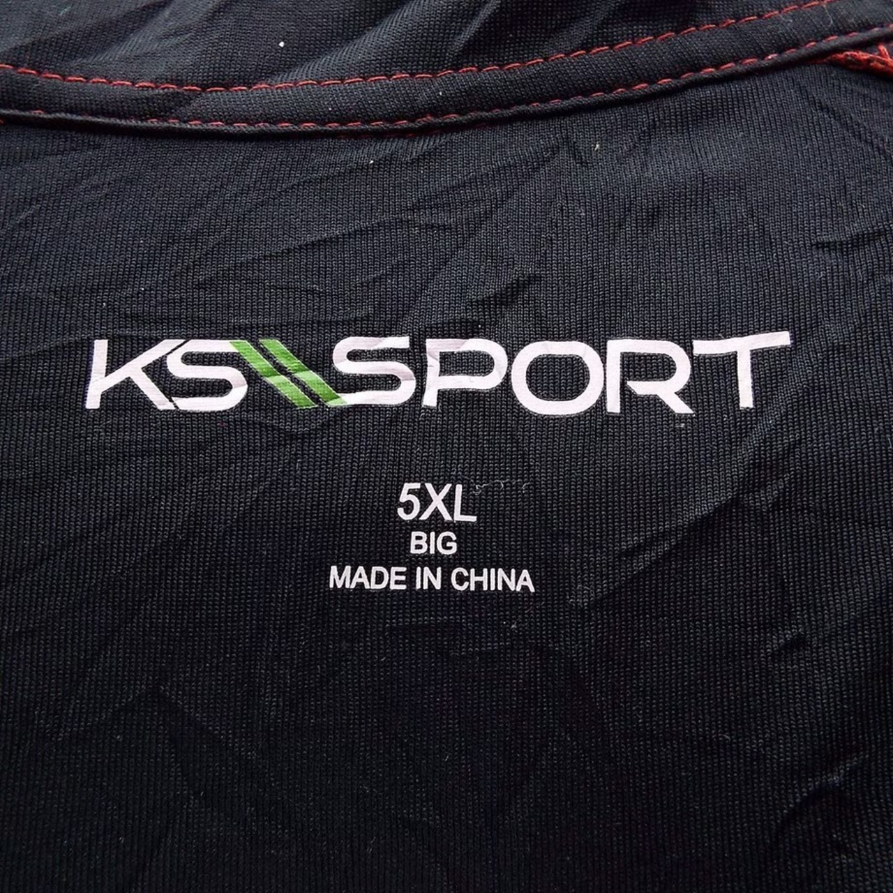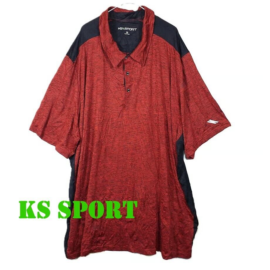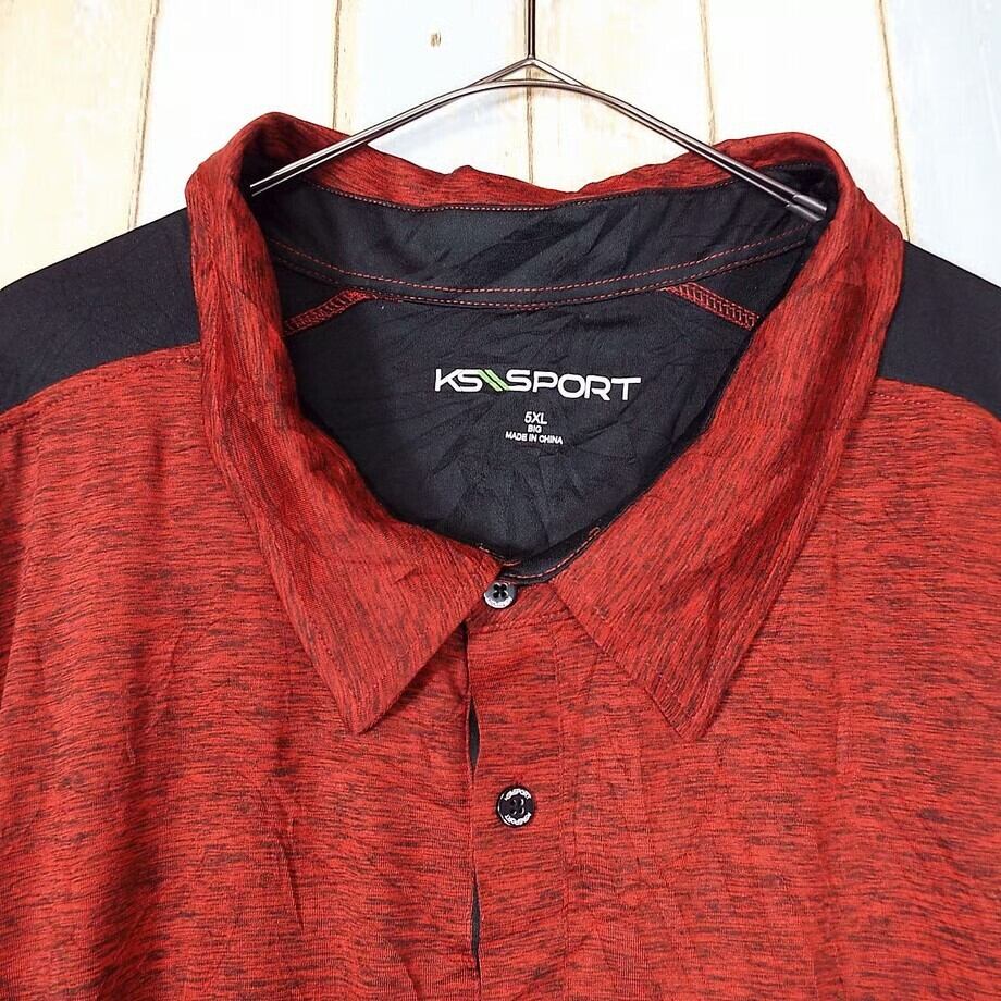 ◎肩幅60cm◎ KS SPORT ケーエススポーツ 伸縮素材 バイカラー 霜降り 袖ロゴ 半袖ポロシャツ 5XL ワインレッド・ブラック ポリエステル混【湘南倉庫】USメンズ古着 ビッグサイズ ゆるだぼ