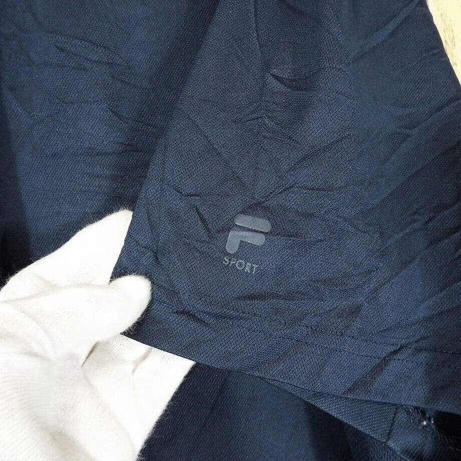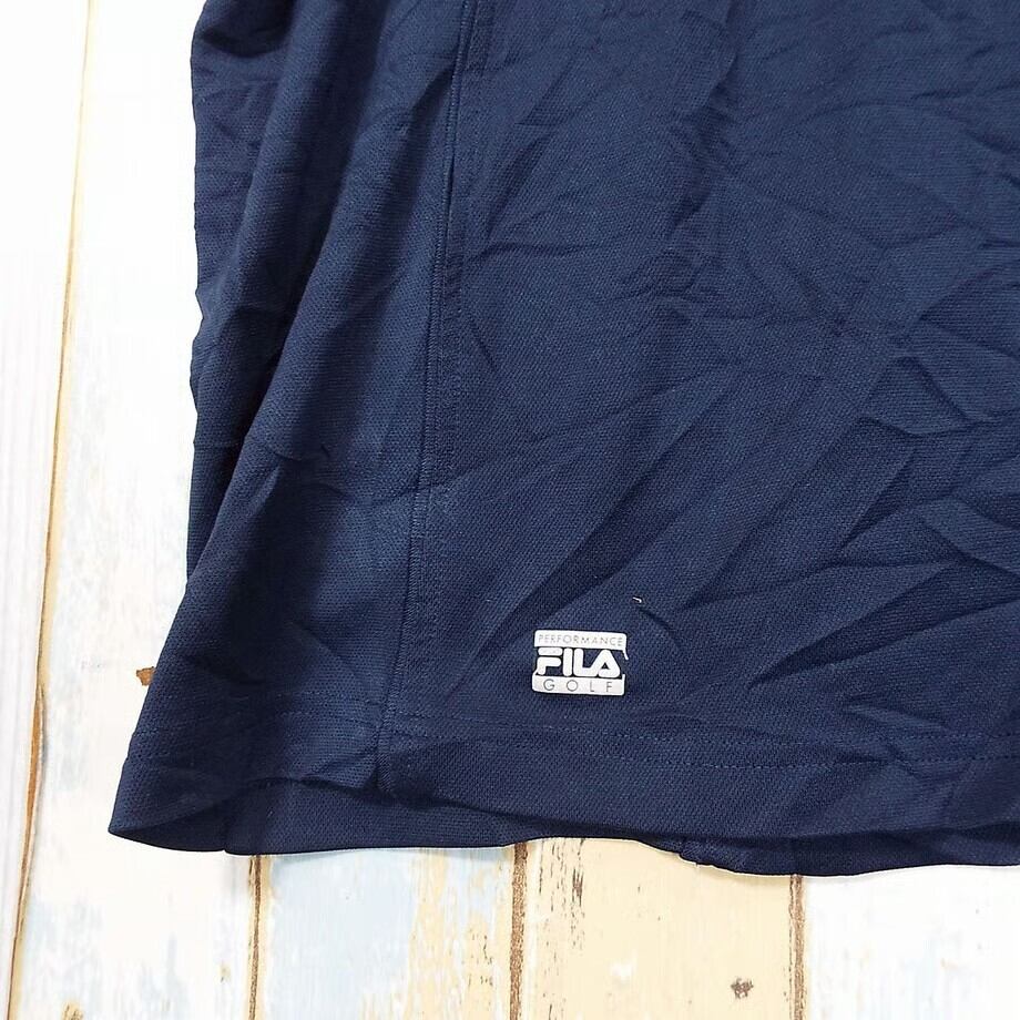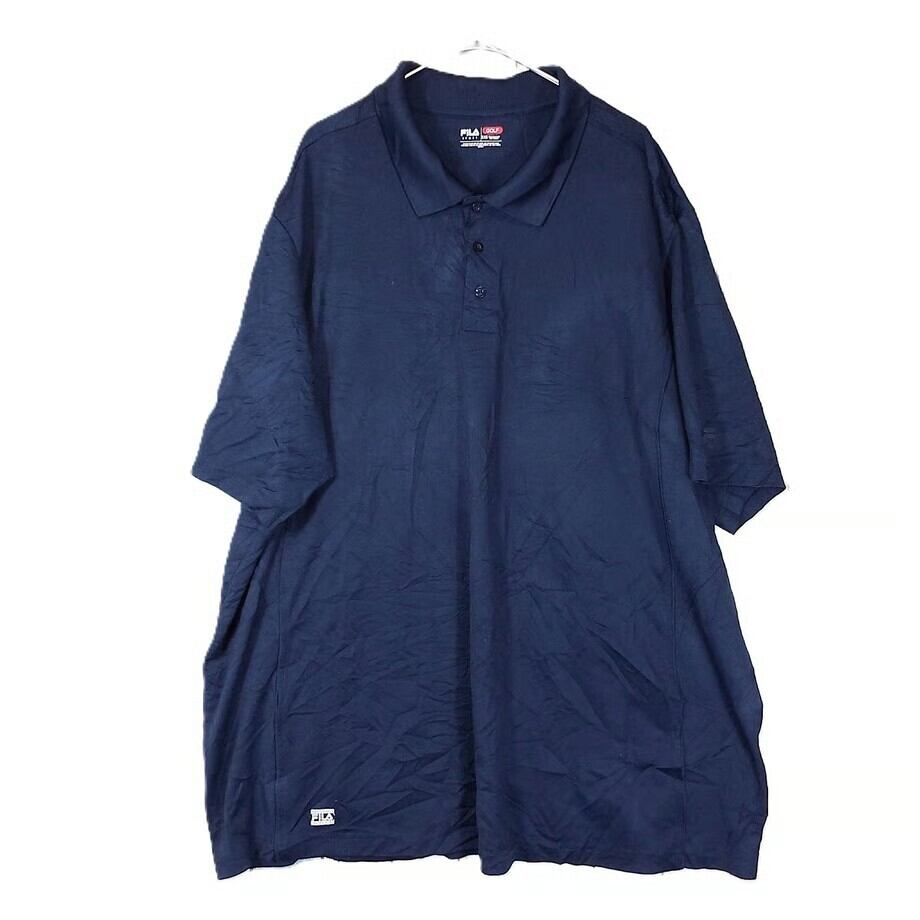 ◎肩幅55cm◎ FILA GOLF フィラゴルフ 脇下メッシュ 無地 袖ロゴ 半袖ポロシャツ 3XBサイズ ネイビー ポリエステル100% 17003186USメンズ古着 ビッグサイズ ノームコアコーデ