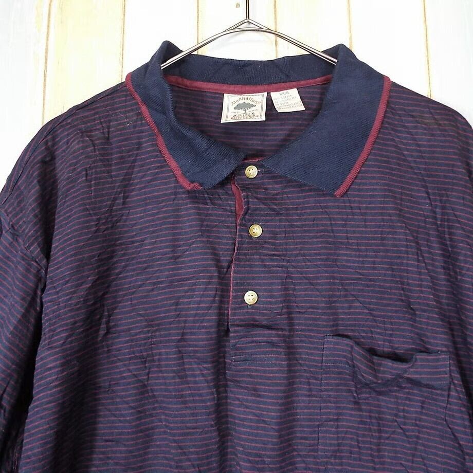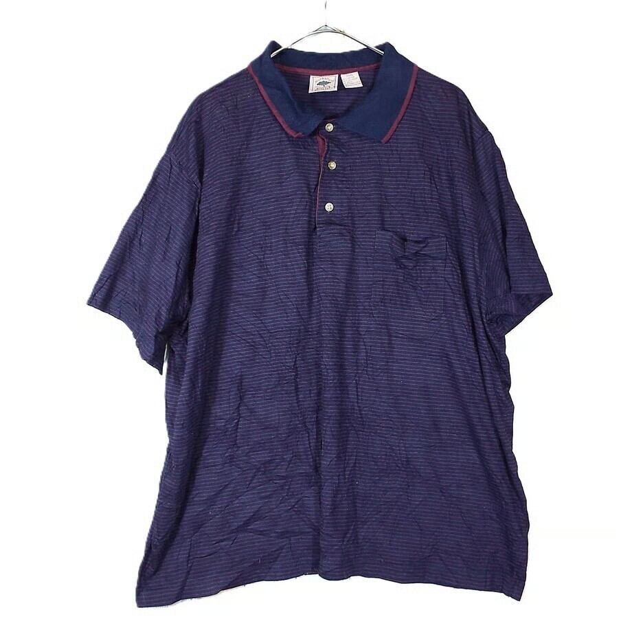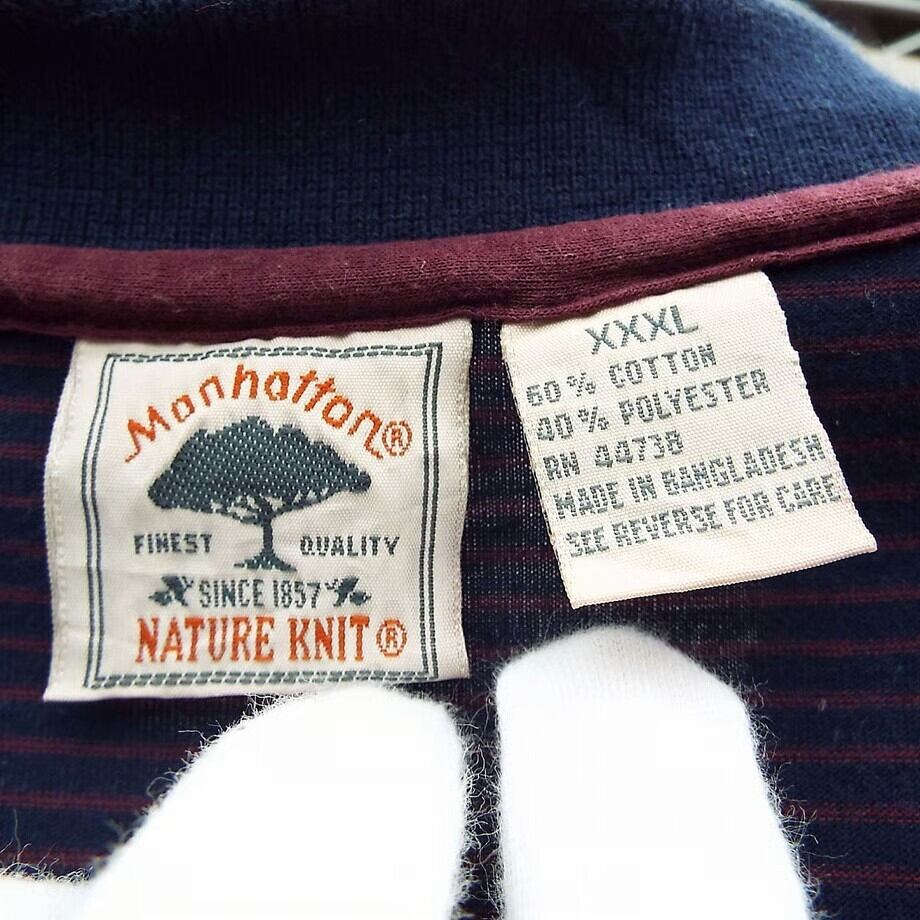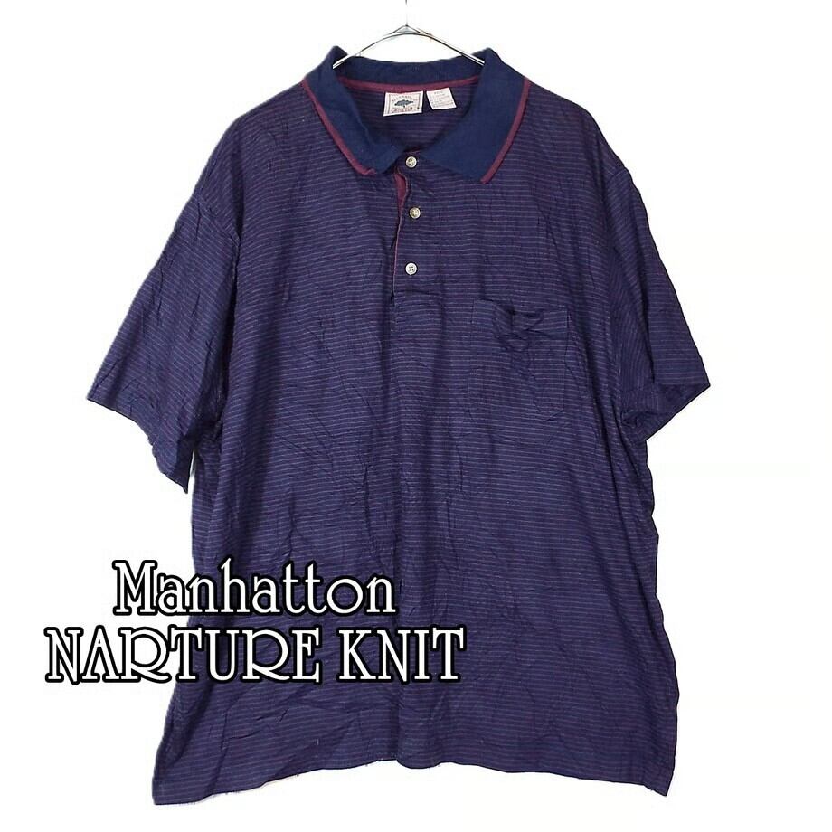 ◎肩幅53cm◎Manhatton×MATURE KNIT マンハッタンコラボ ストライプ 半袖ポロシャツ 3XL ネイビー・ワインレッド コットンポリ混 17003186【湘南倉庫】USメンズ古着 ビッグサイズ