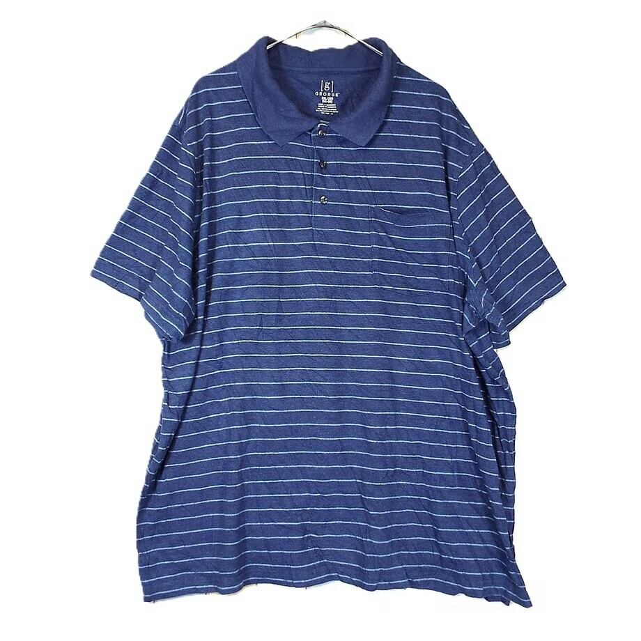 【肩幅54cm】GEORGE ジョージ ポケット 厚手 半袖ポロシャツ 3XLサイズ コットンポリ混 ブルーネイビー 17003179【湘南倉庫】USメンズ古着 ビッグサイズ