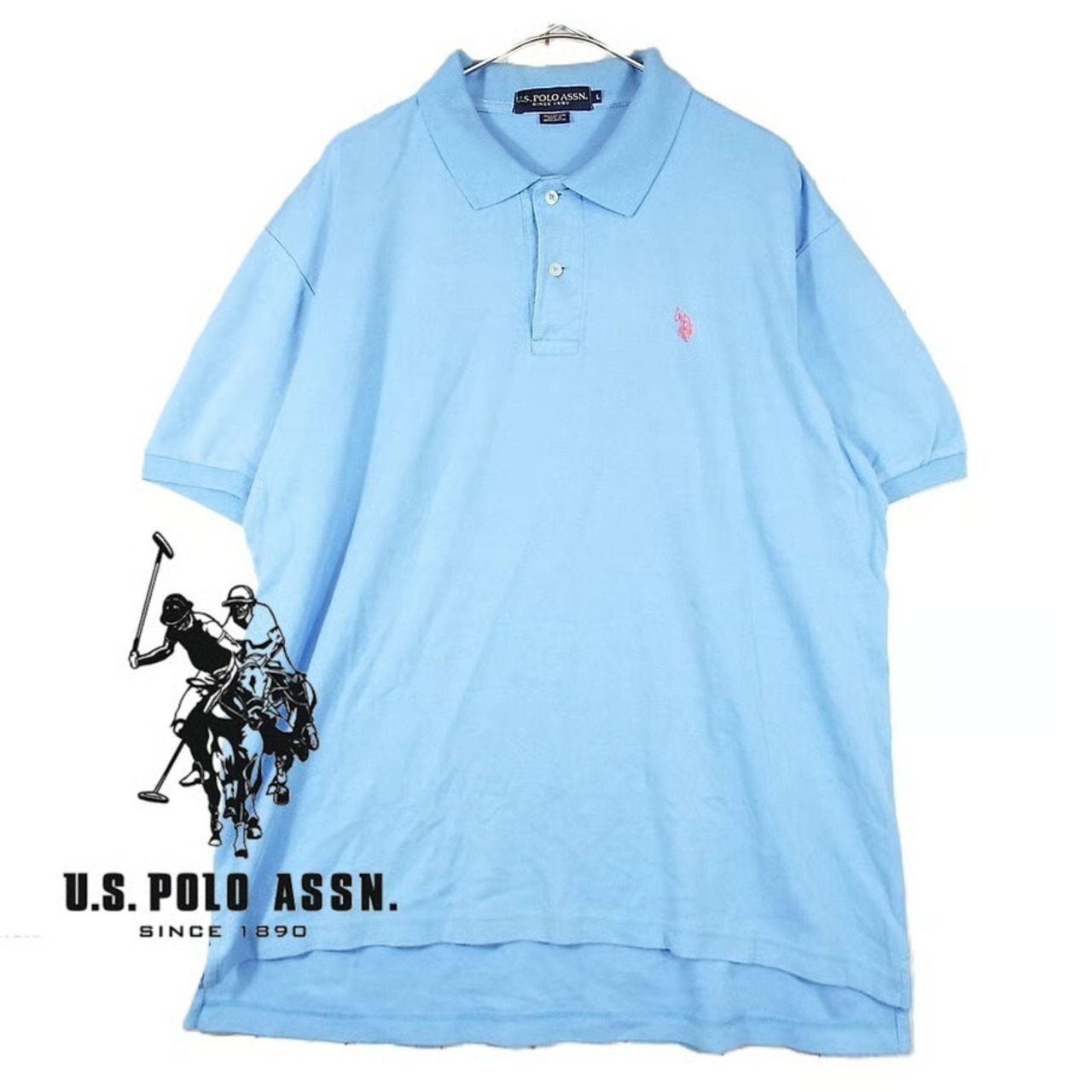 【肩幅52cm】U.S.POLO ASSN ユーエス・ポロ・アッスン 厚手 無地 半袖ポロシャツ Lサイズ コットン100% スカイブルー 4912345017222【湘南倉庫】USメンズ古着 ビッグサイズ ノームコアコーデ