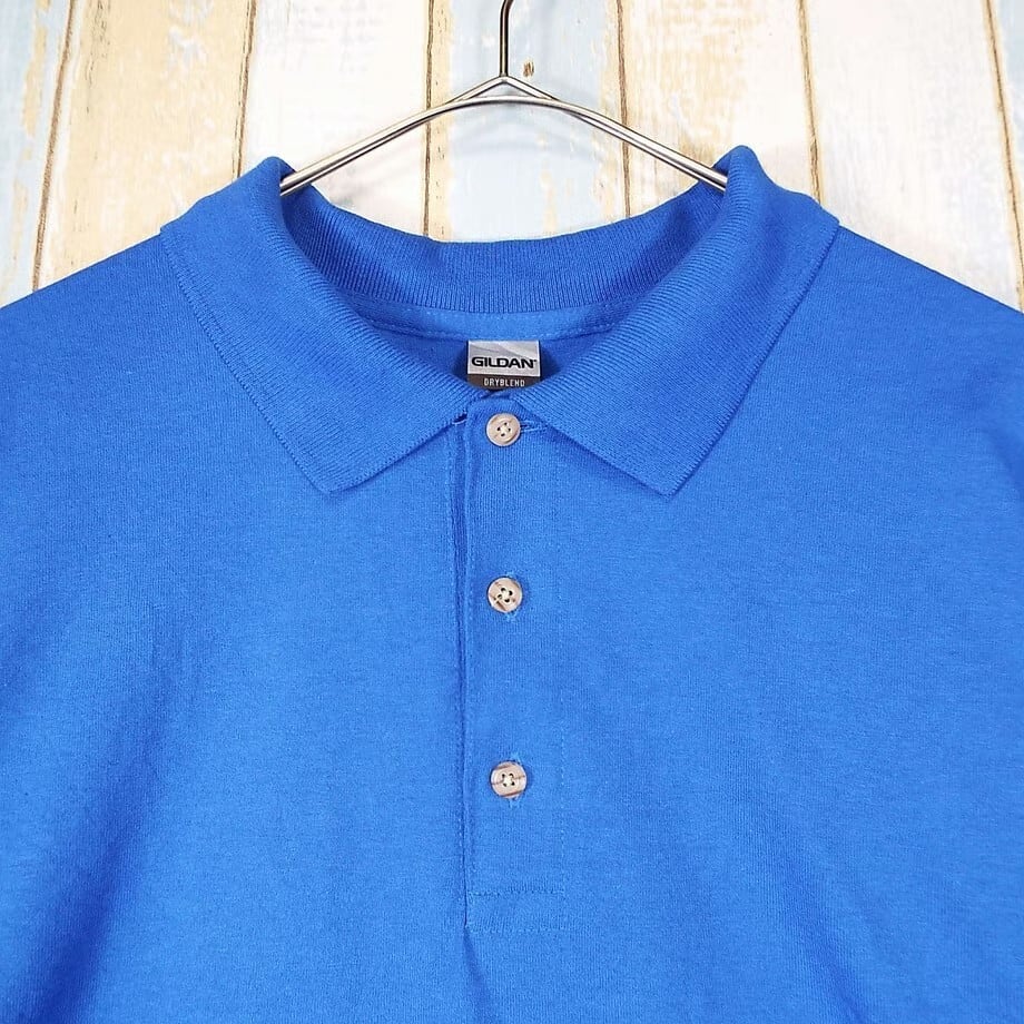 【肩幅64cm】GILDAN ギルダン 無地 半袖ポロシャツ 2XLサイズ ブルー コットン・ポリエステル(50/50)ゆるだぼ 16000469【湘南倉庫】USメンズ古着 ビッグサイズ ノームコアコーデ