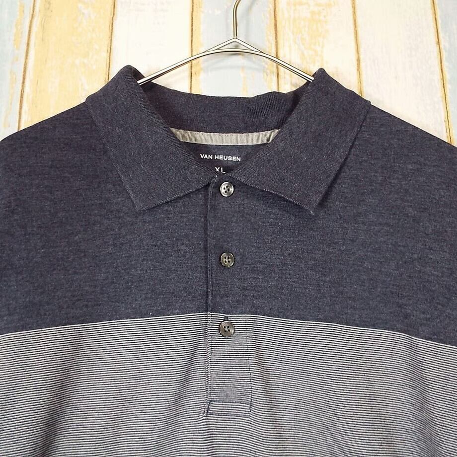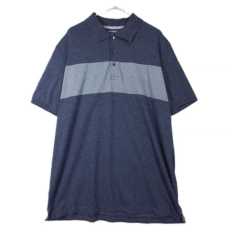 【肩幅50cm】VAN HEUSEN ヴァンヒューゼン バイカラー 半袖ポロシャツ XLサイズ コットンポリ混紡 ネイビー・グレー【湘南倉庫】4912345017024 USメンズ古着 ビッグサイズ