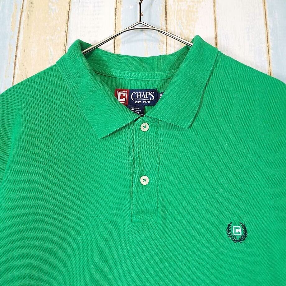 【肩幅53cm】CHAPS チャップス ラルフローレン ワンポイントロゴ 無地 鹿の子 半袖ポロシャツ 肩幅53cm コットン100% グリーン【湘南倉庫】4912345017031 USメンズ古着 ビッグサイズ ノームコアコーデ