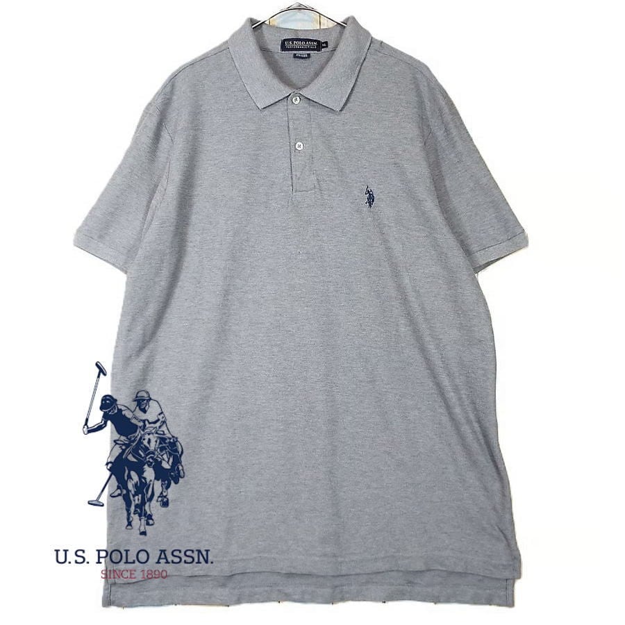 【肩幅49cm】【インド製】U.S.POLO ASSN. ユーエス・ポロ・アッスン 無地 ワンポイント刺繍 半袖ポロシャツ XLサイズ コットンポリ混紡 ライトグレー【湘南倉庫】17001427 USメンズ古着 ビッグサイズ ノームコアコーデ