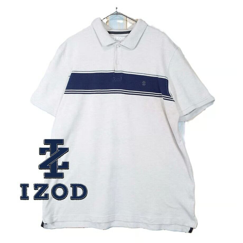【肩幅47cm】【ストレッチ素材】IZOD イゾット ラインデザイン 半袖ポロシャツ 肩幅47cm コットンポリ オフホワイト【湘南倉庫】16001473 USメンズ古着 ビッグサイズ