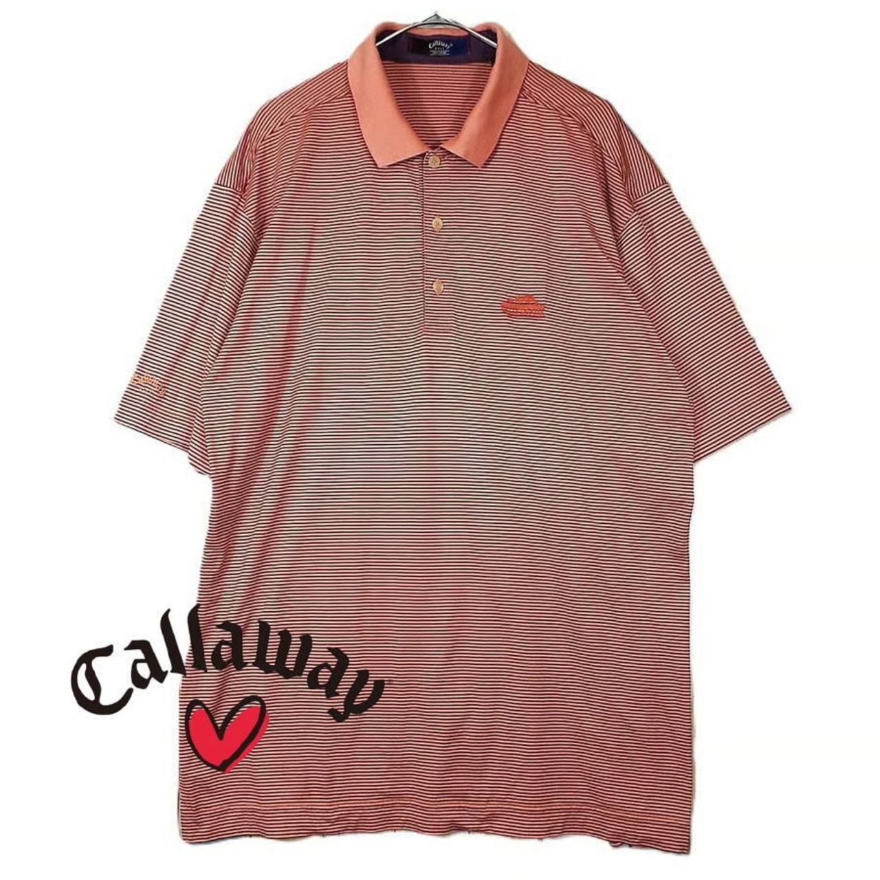 【肩幅55cm】Calaway GOLF COLLECTION キャロウェイゴルフ コレクション ストライプ柄 半袖ポロシャツ 肩幅55cm コットン100% オレンジブラック【湘南倉庫】4912345017512 USメンズ古着 ビッグサイズ