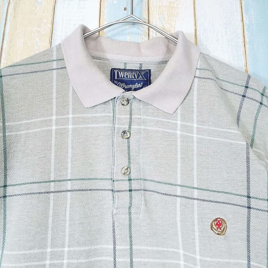 ◎肩幅63cm◎【90年代】TWENTY X Wrangler ラングラー 鹿の子 ワンポイント刺繡 半袖ポロシャツ XLサイズ コットン100% ブラウンベージュ【湘南倉庫】17002783 USメンズ古着 ビッグサイズ