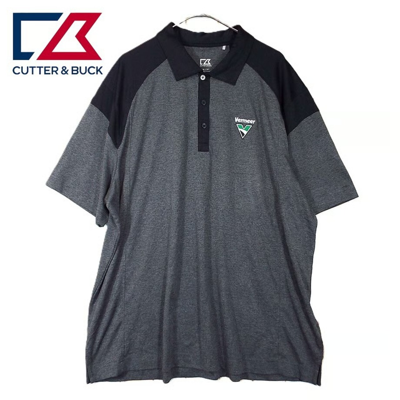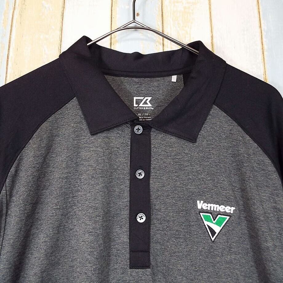 ◎肩幅53cm◎【UFP50+(UVケア)】CUTTER&BUCK カッターアンドバック 霜降り 胸刺繍 紫外線防止 半袖ポロシャツ XLサイズ ポリエステル100% グレーブラック【湘南倉庫】ゴルフウェア 17002783 USメンズ古着 ビッグサイズ