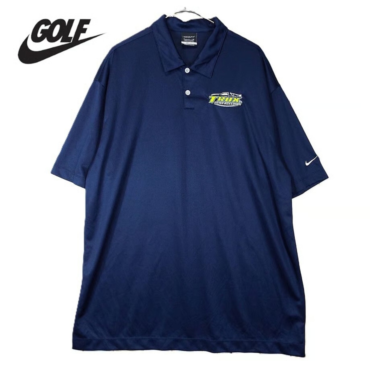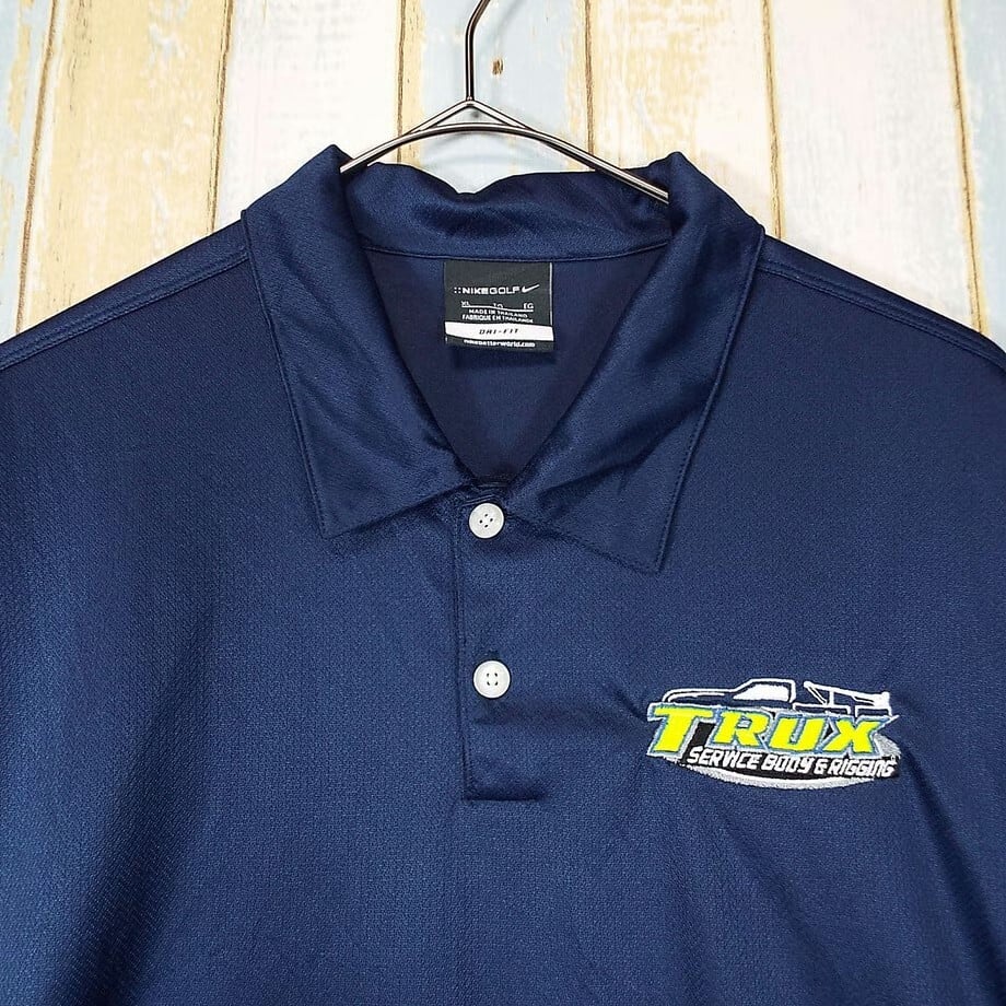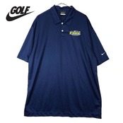 ◎肩幅56cm◎【ワッペン刺繍】NIKE GOLF ナイキゴルフ 無地 胸刺繍 DRYFIT ドライフィット 半袖ポロシャツ XLサイズ ポリエステル100% ネイビー【湘南倉庫】ゴルフウェア 17002783 USメンズ古着 ビッグサイズ ノームコアコーデ