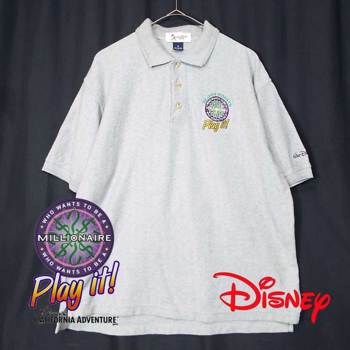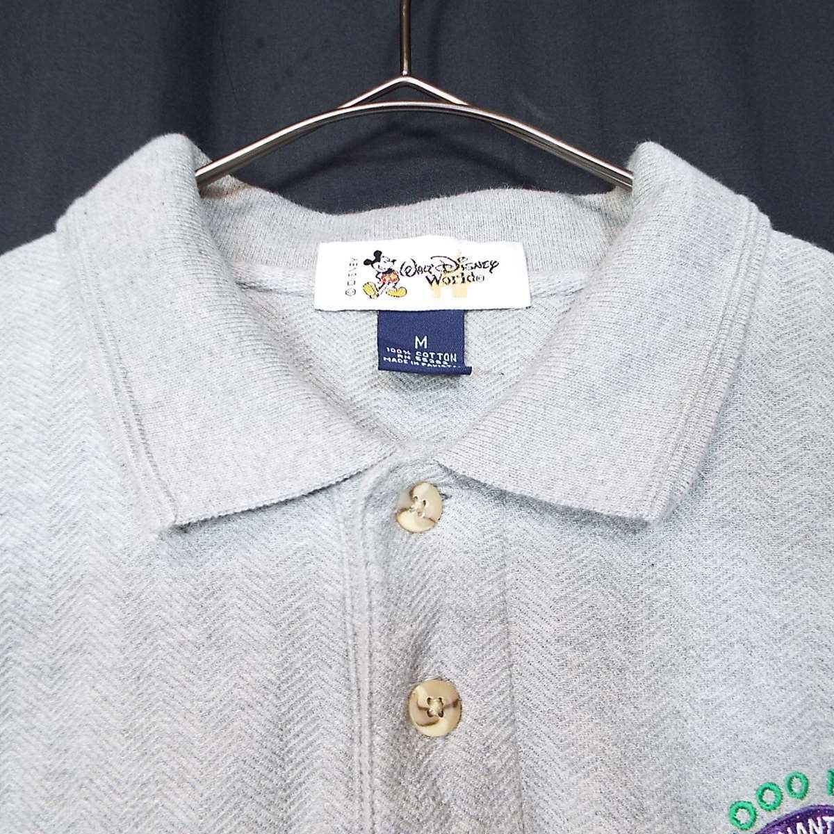 【非売品】【パキスタン製】00's Walt Disney World (ディズニー公式)MILLIONAIRE ミリオネア オリジナル刺繍ロゴ 半袖ポロシャツ Mサイズ(肩幅cm)ライトグレー コットン100%【湘南倉庫】2000年代 USメンズ古着 ディズニー好き