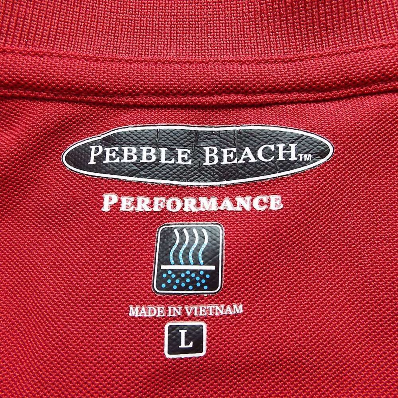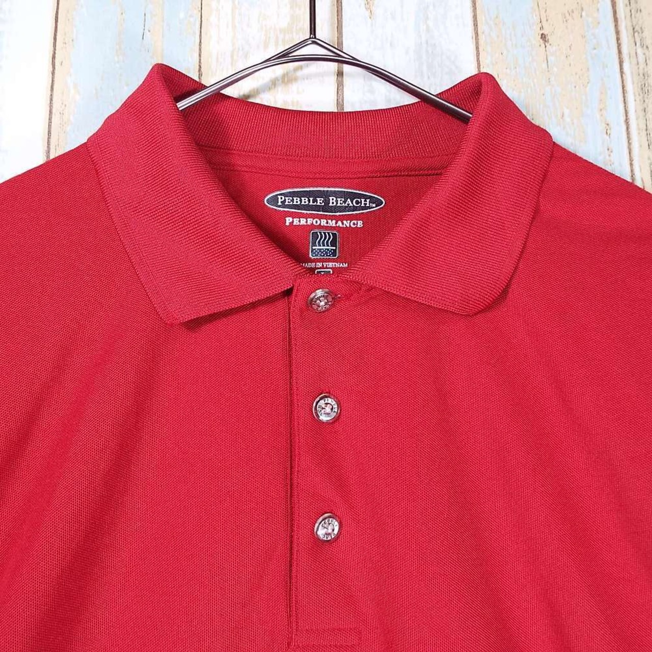 【肩幅50cm】【速乾シャツ】PEBBLE BEACH(ペブル・ビーチ)ロゴ入りボタン 無地 半袖ポロシャツ Lサイズ レッド ポリエステル100%【湘南倉庫】US古着 17002547 タウンユース ゴルフウェア