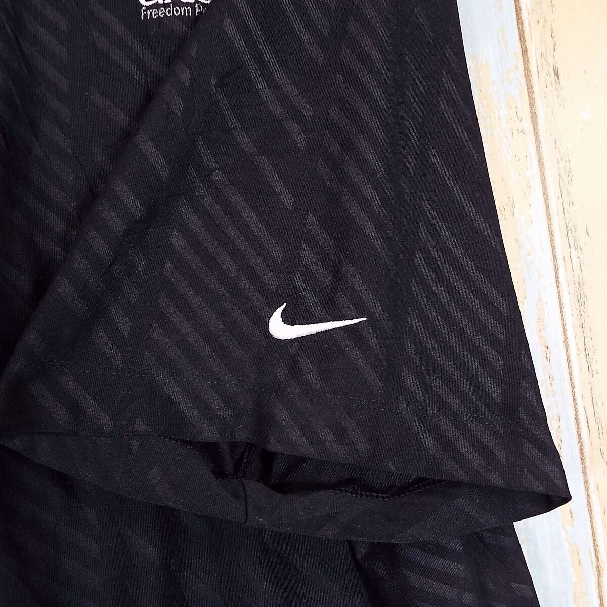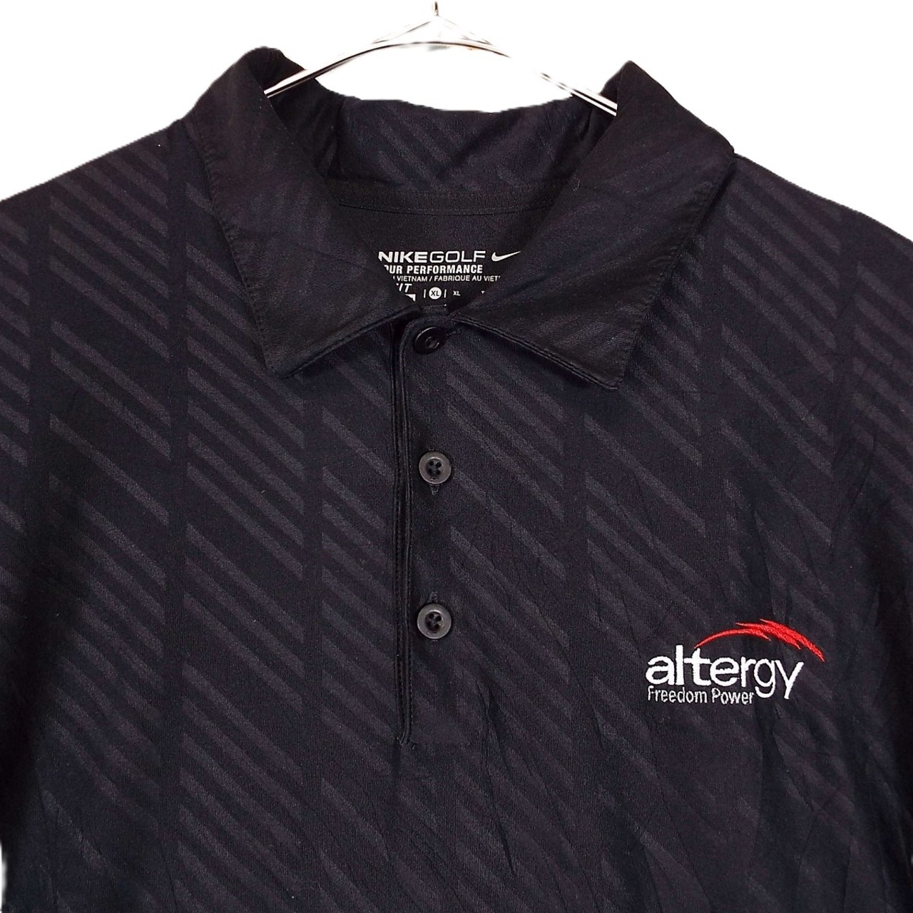 【企業ロゴ】NIKE GOLF(ナイキゴルフ)DRY-FIT ストレッチ素材 シャドーストライプ 胸ロゴ 半袖ポロシャツ XLサイズ(肩幅 52cm)ブラック ポリエステル混紡【湘南倉庫】USメンズ古着 17002523