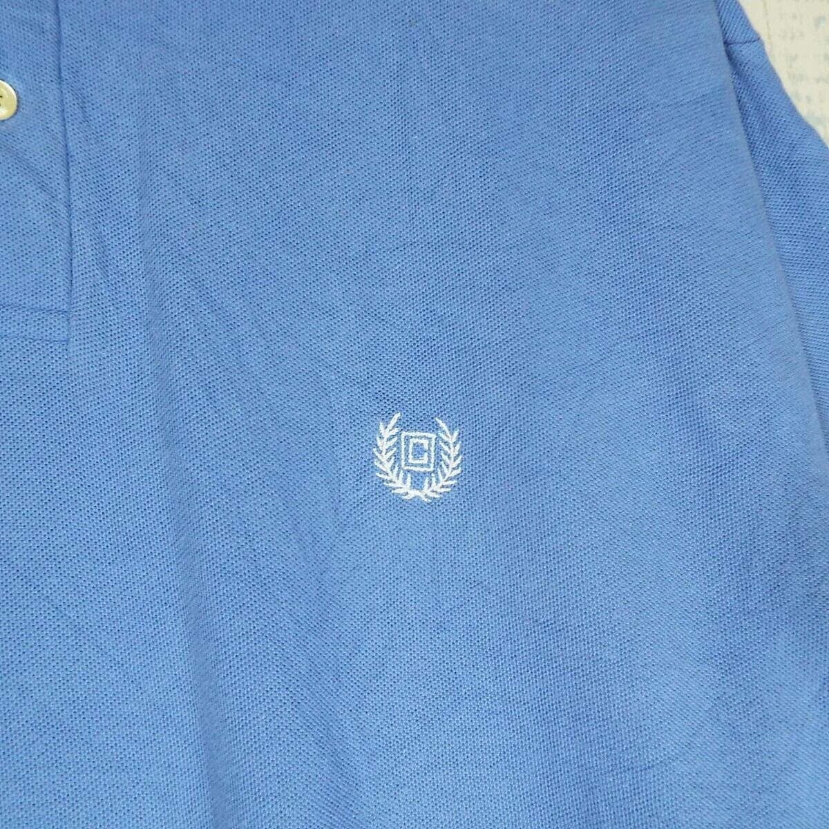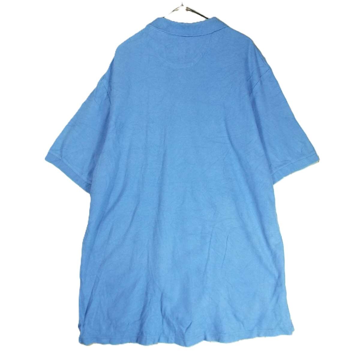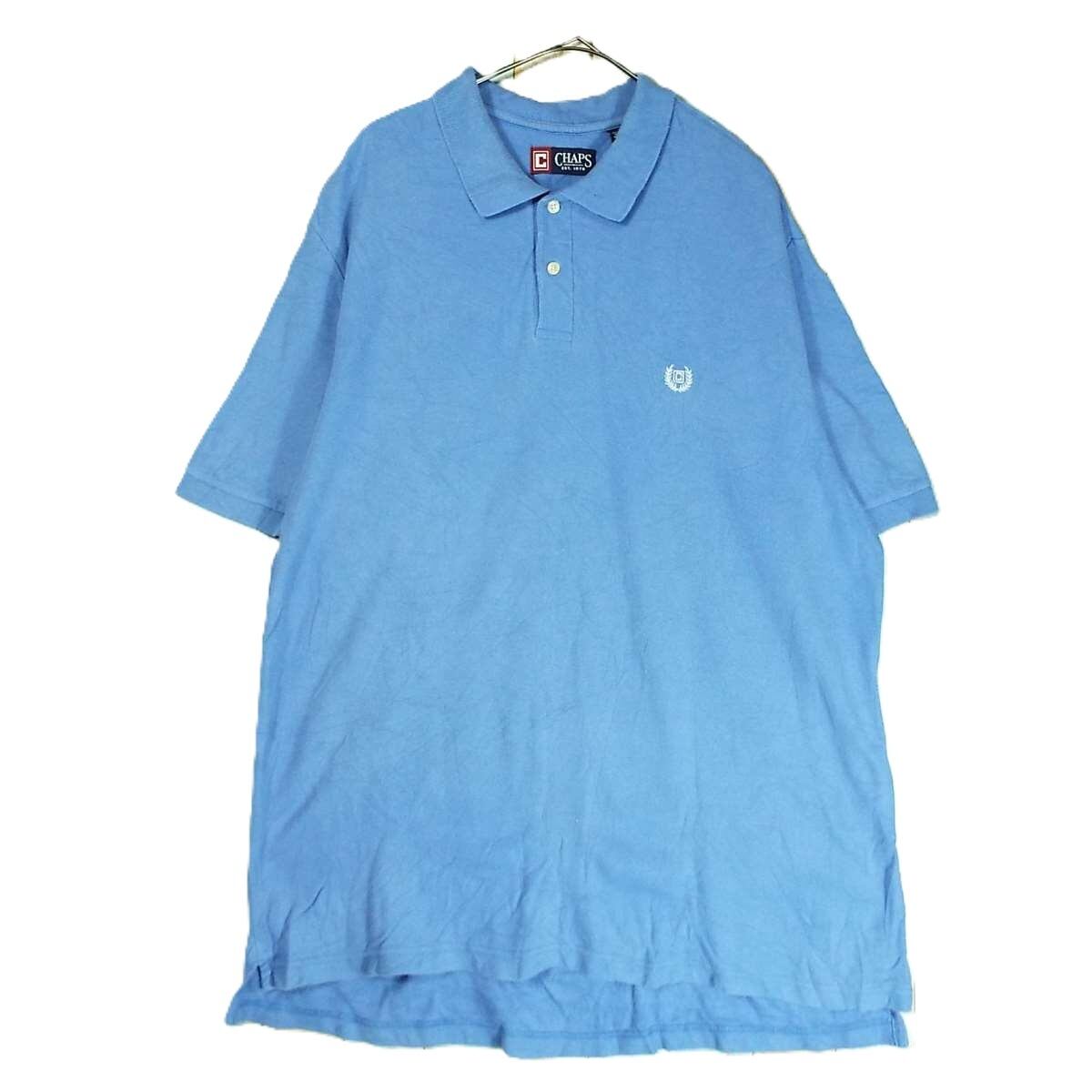☆◎ワンポイント刺繍◎インド製 CHAPS(チャップス・ラルフローレン)鹿の子 無地 半袖ポロシャツ XLサイズ(肩幅 53cm)ブルー コットン100%【湘南倉庫】USメンズ古着 17002493