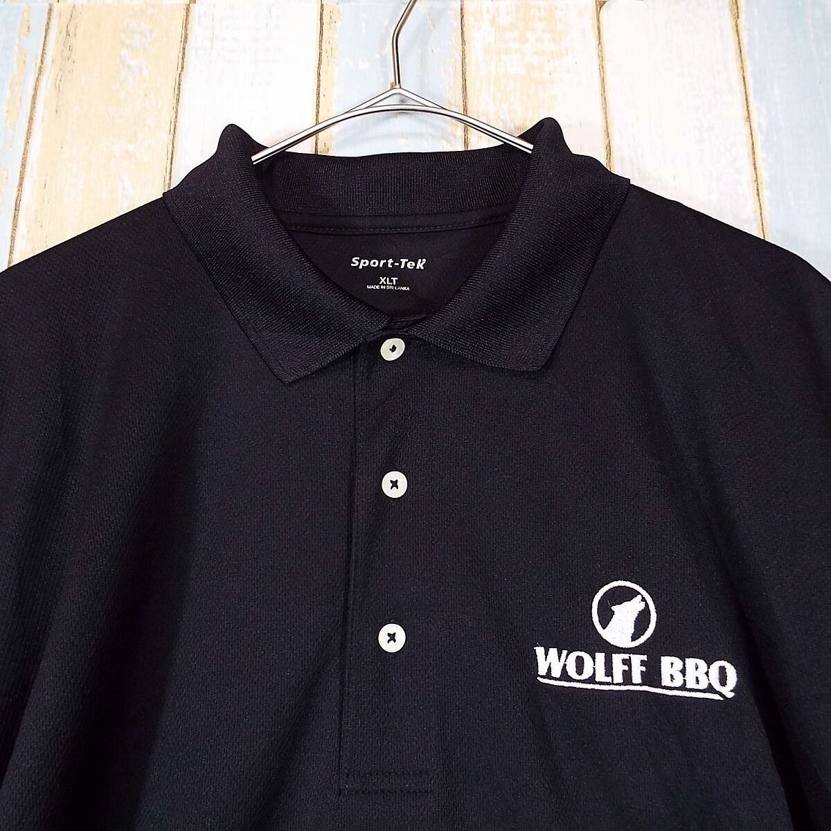 【速乾メッシュ素材】Sport-Tek(スポーツテック)WOLFF BBQ 刺繍ロゴ 半袖ポロシャツ XLサイズ(肩幅 56cm)ブラック 【湘南倉庫】USメンズ古着 17002509